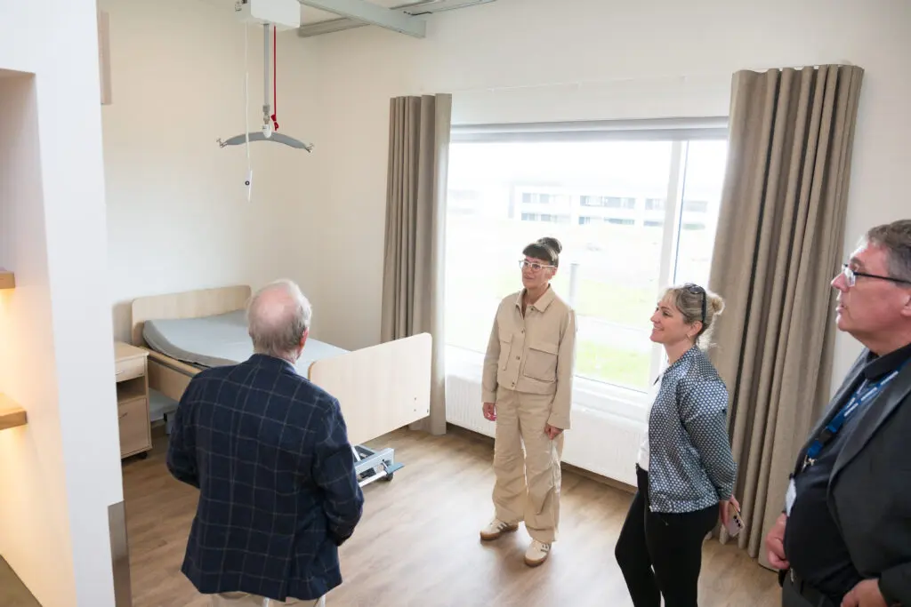 Í gær var vígsla á 64 nýjum rýmum í 4.160 m2 við hjúkrunarheimili Hrafnistu Boðaþing í Kópavogi, að viðstöddu miklu fjölmenni. Hjúkrunarrými á heimilinu eru þá samtals orðin 108 talsins og þar með er lífsgæðakjarninn í Boðaþingi full risinn með hjúkrunarheimili Hrafnistu, leiguíbúðum DAS íbúða og þjónustumiðstöðinni Boðanum.