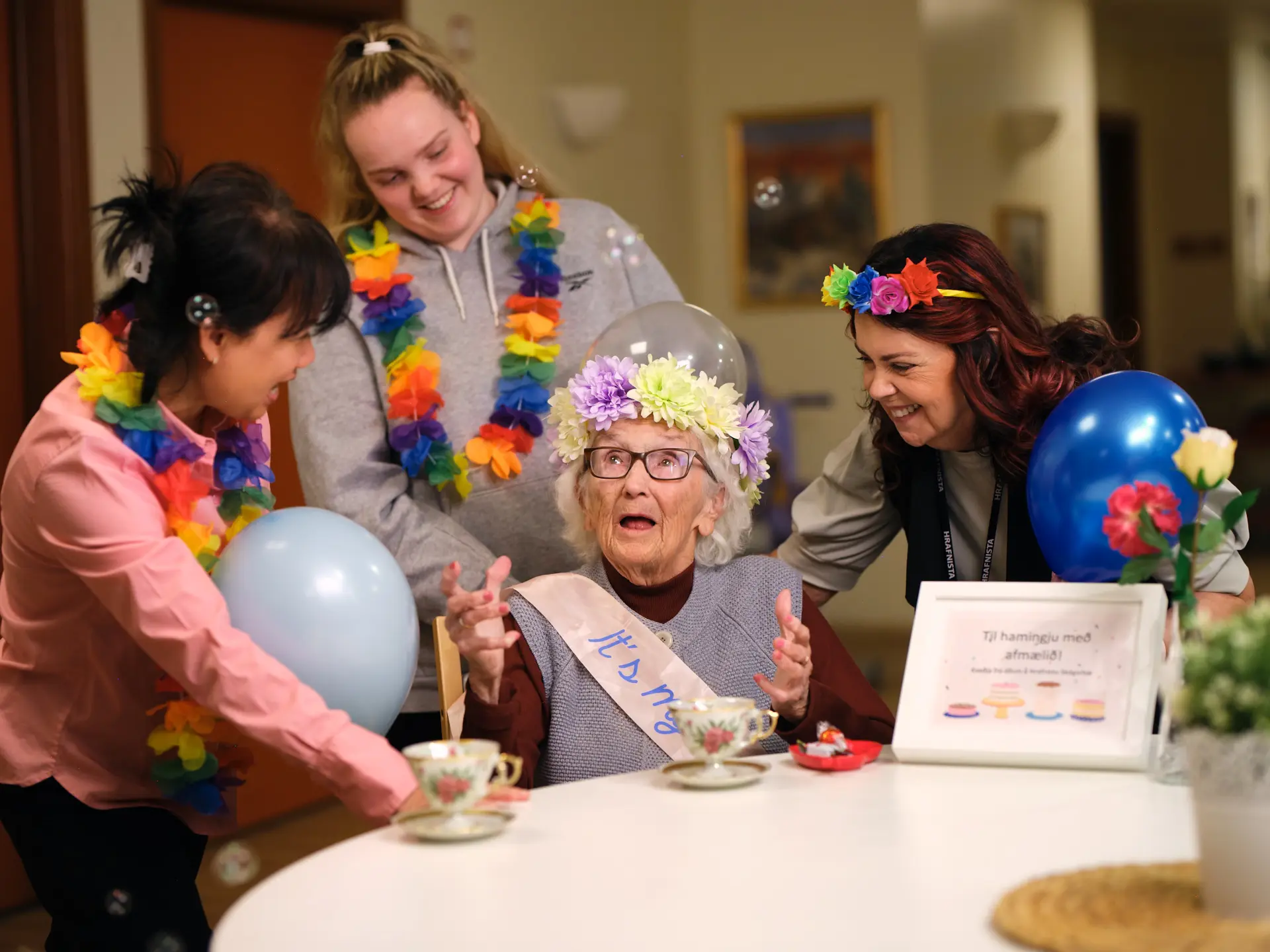 Á stórafmælum íbúa er haldið upp á daginn á deildinni og boðið upp á veitingar fyrir íbúa deildarinnar. Ef aðstandendur vilja halda afmæli fyrir fjölskyldu og vini geta þeir komið með veitingar á deildina og á sumum heimilum er hægt að fá leigða aðstöðu fyrir slíkar samkomur. Mikilvægt er að skipuleggja slíkt í samráði við deildarstjóra.