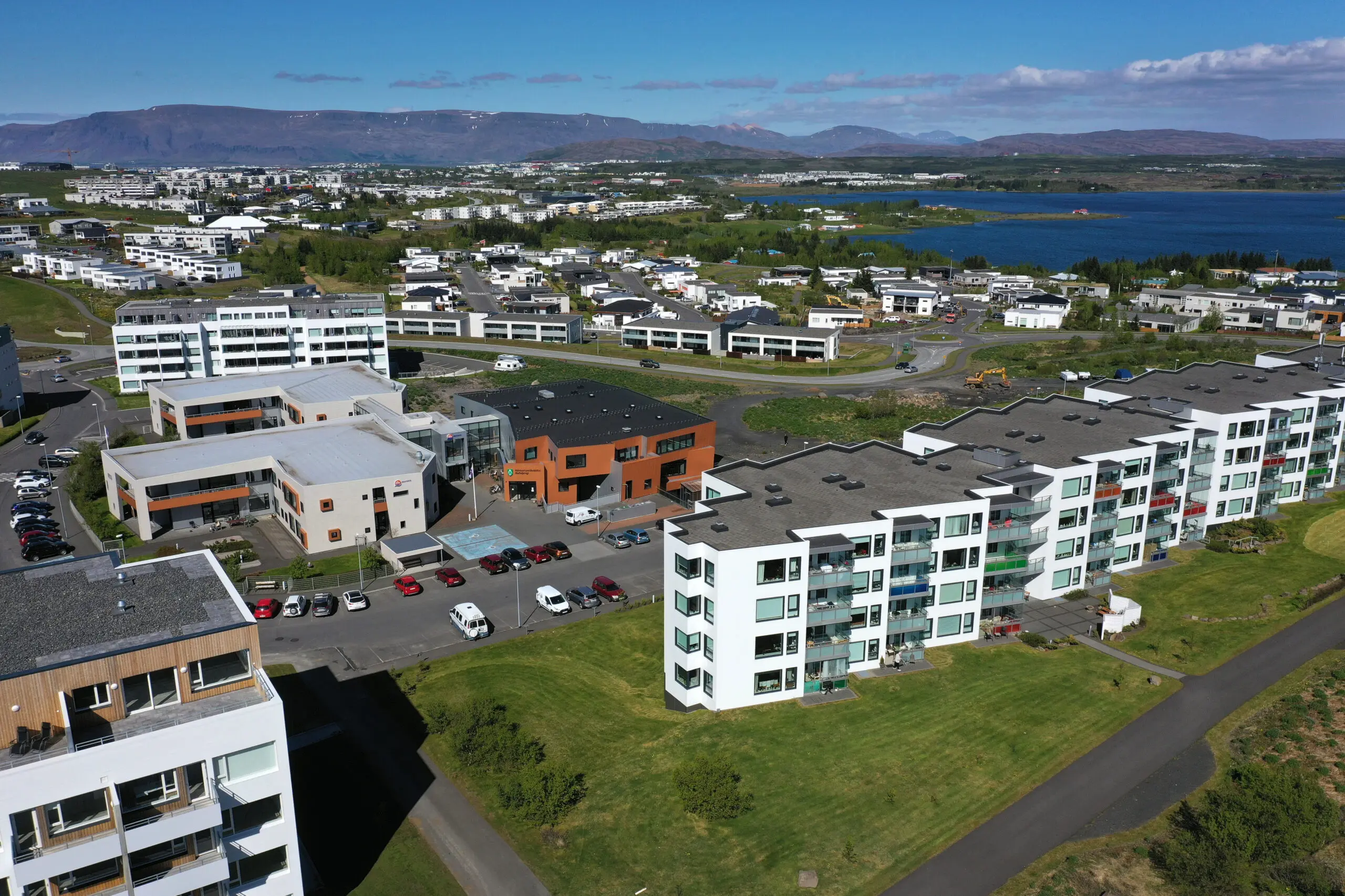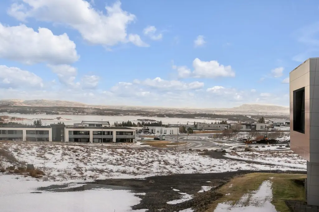 Frá heimilinu er óviðjafnanlegt útsýni þar sem kallast á skógurinn í Heiðmörk og kyrrt vatnið, auk fallegrar fjallasýninnar.