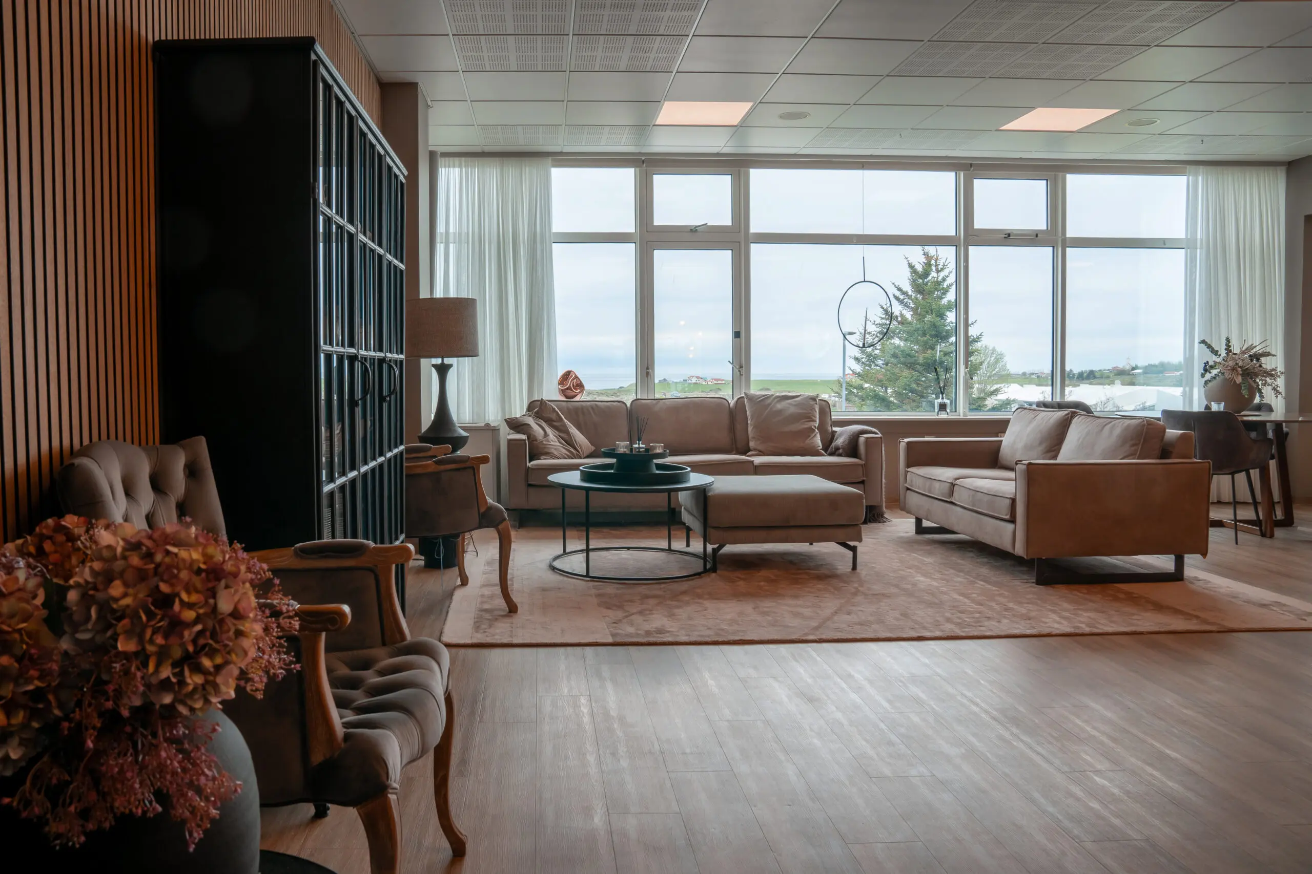 Á kaffihúsinu eiga íbúar og gestir notalegar stundir þar sem boðið er uppá kaffidrykki og aðrar veitingar. Útsýnið úr kaffihúsinu er einstakt yfir hraunið og út á Faxaflóa.