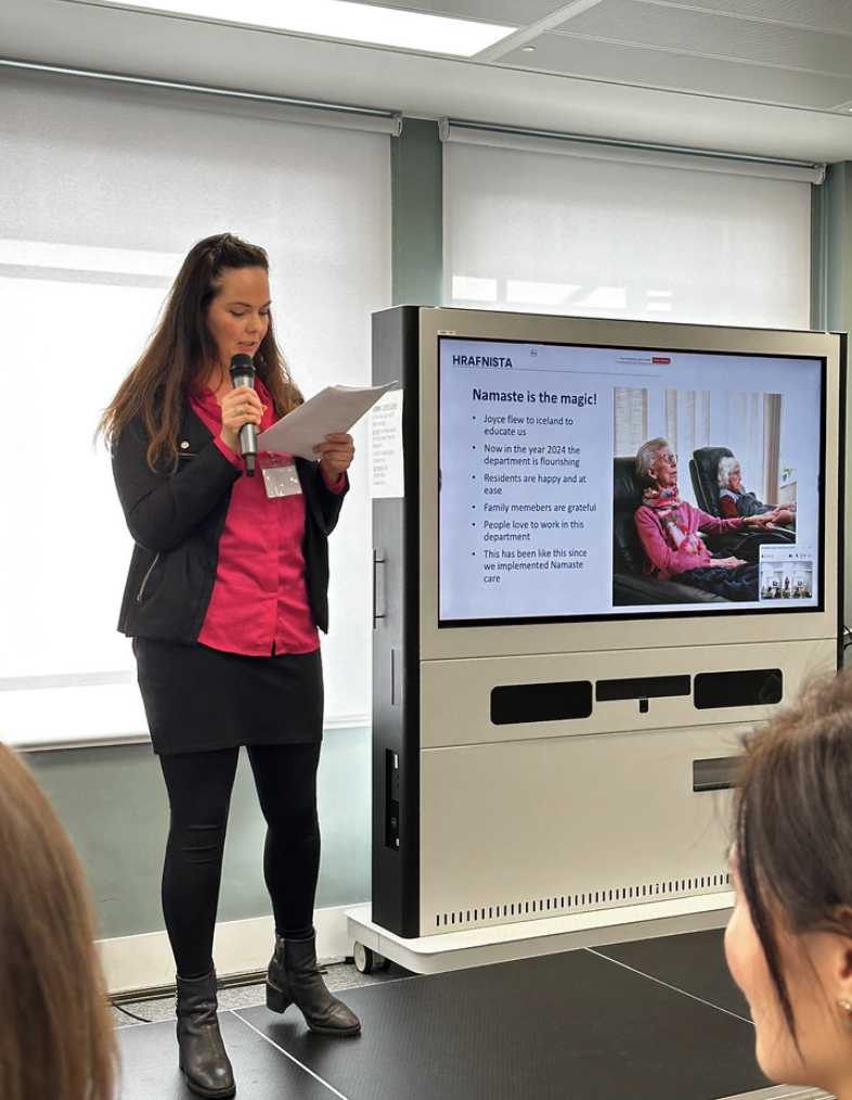 Ráðstefna um Namaste meðferð fyrir fólk með heilabilunarsjúkdóma var haldin í London 25. september sl. en Namaste nálgun gengur út á að auka vellíðan fólks með langt gengin heilabilunarsjúkdóm. Sunnefa Lindudóttir hjúkrunardeildarstjóri á Hrafnistu í Skógarbæ var með erindi á ráðstefnunni þar sem hún fjallaði meðal annars um innleiðingu Namaste á Hrafnistu og hvernig Hrafnista vinnur með nálgunina.