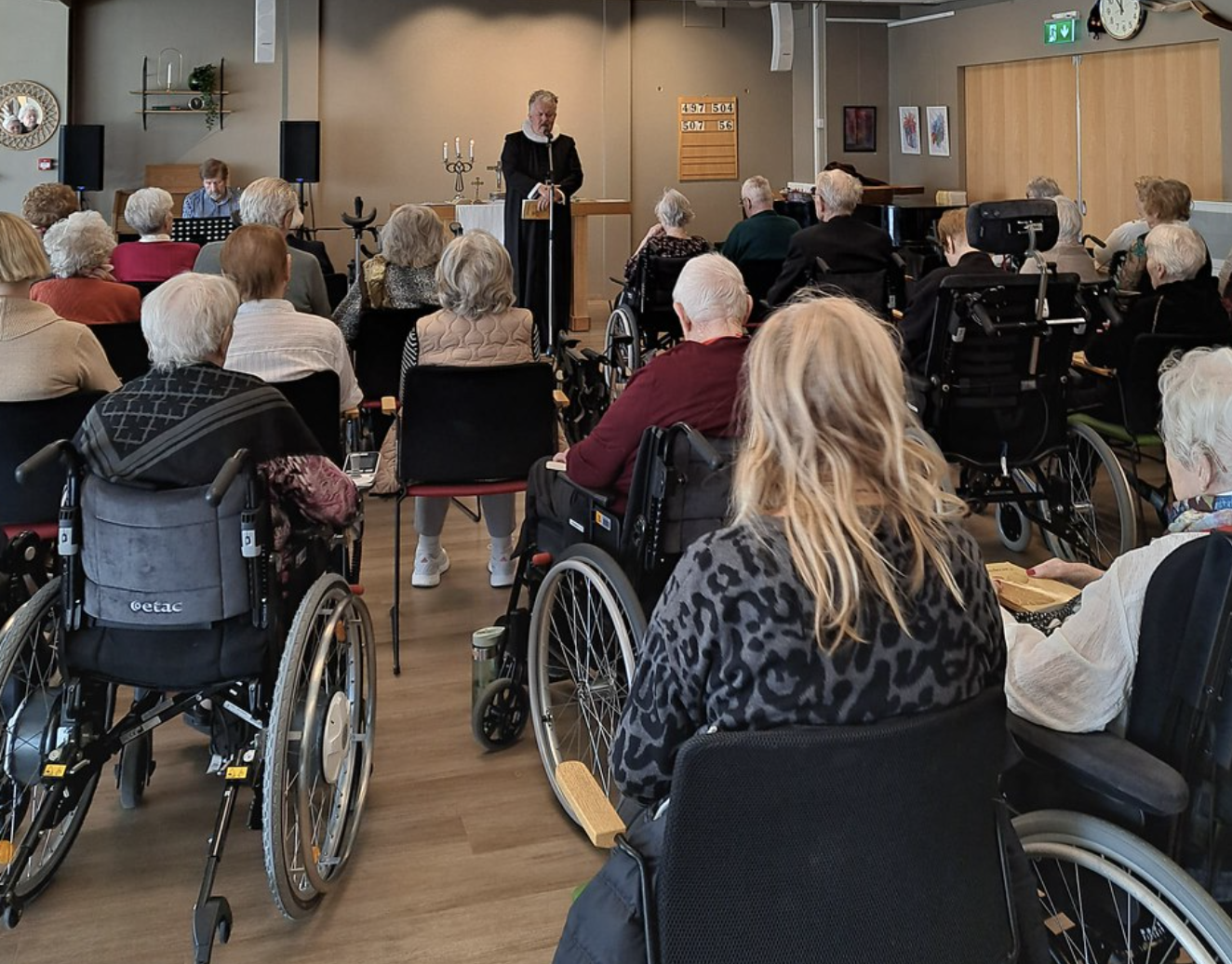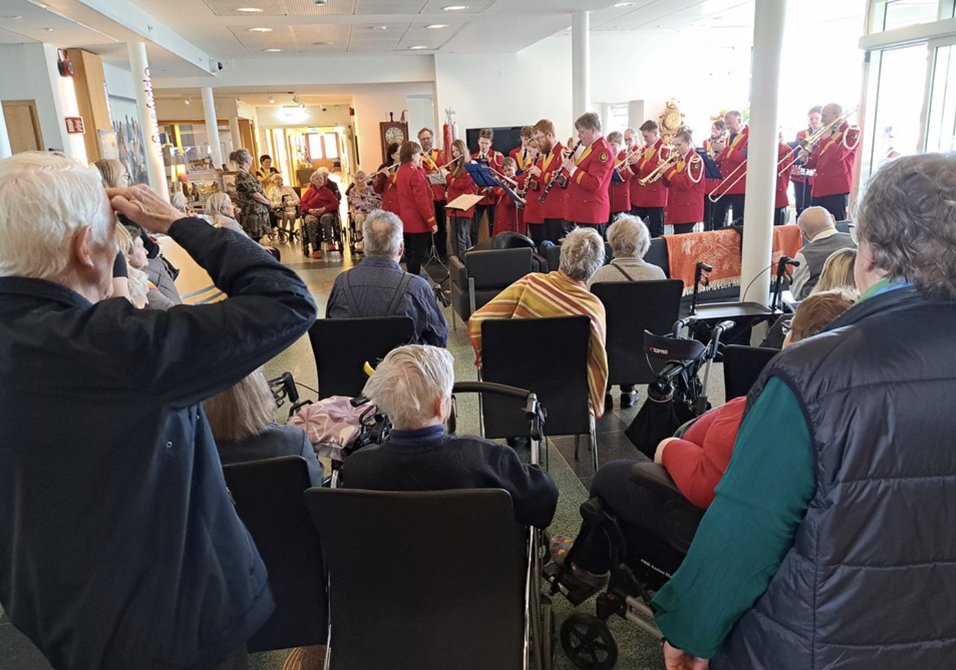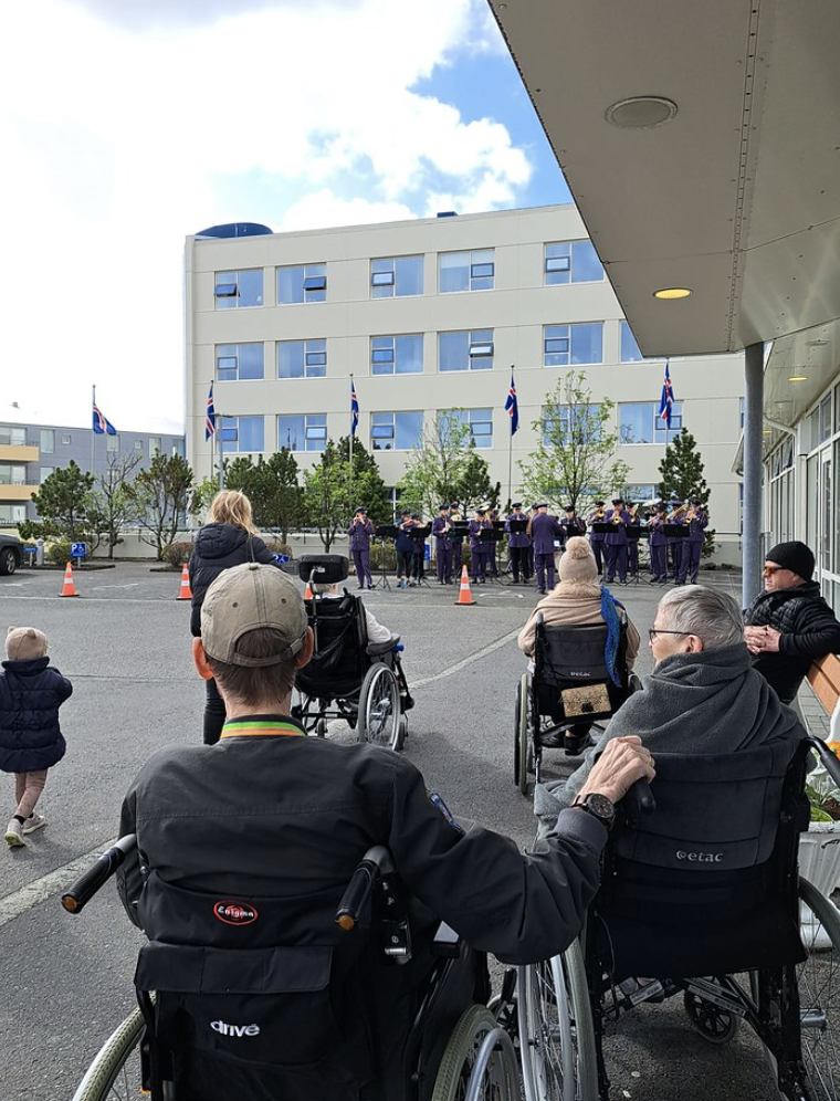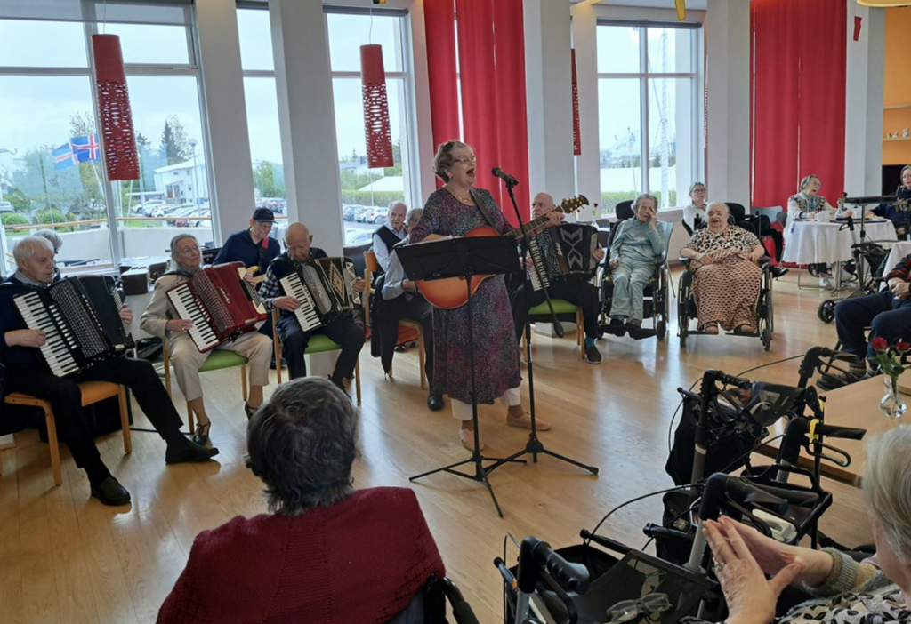 Matthías Ægisson og Heiða Hrönn Harðardóttir spiluðu og sungu fyrir íbúa á Hrafnistu Nesvöllum og Hrafnistu Hlévangi í Reykjanesbæ, í tilefni dagsins og margir tóku margir undir í söngnum.